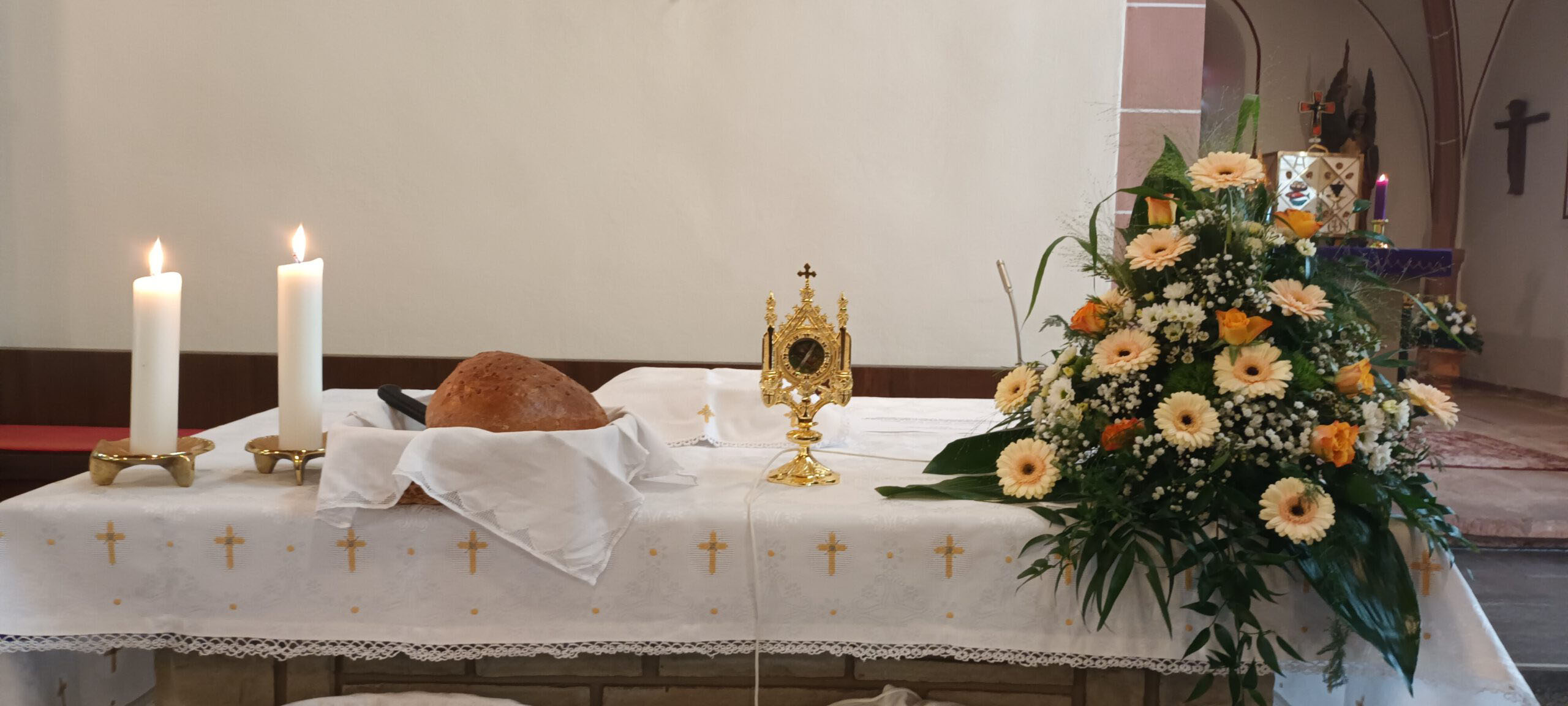 Nach einem festlichen Gottesdienst mit der traditionellen Brotsegnung durchgef�hrt von Herrn Pastor Peter Frey und gestaltet vom Kirchenchor und den Bl�sern Louisa Maas und Dominik Pinter, empfing die Besucher drau�en strahlender Sonnenschein.