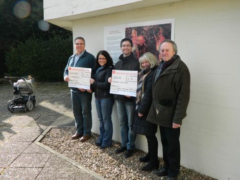 Mit Freude und Dank nahmen Frank Gl�ser, Vertreter der Elterninitiative, und Hanna Altenhofen, Schatzmeisterin des F�rdervereins, die Schecks entgegen, die vom Leiter des Chores Stefan Langenfeld und von der S�ngerin Kathrin Altenhofen k�rzlich �berreicht wurden.