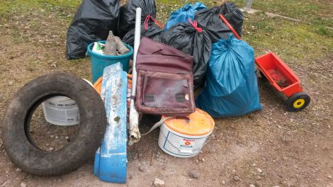 Am Schluss der Aktion konnte auf dem Depotplatz am Parkplatz Sportplatz einiges zusammengetragen werden, was durch den vom EVS beauftragte Mitarbeiter des st�dtischen Bauhofs entsorgen werden. Unter anderem wurden 3 gef�llte Farbeimer, Autoreifen und sehr viel Glas- und Plastikm�ll gefunden, der achtlos in die Landschaft entsorgt wurde.
