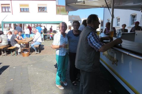Nach einem festlichen Gottesdienst mit der traditionellen Brotsegnung, durchgef�hrt von Herrn Pastor Frey und gestaltet vom Kirchenchor und von Lothar mit seinen Bl�sern, empfing die Besucher drau�en strahlender Sonnenschein. Zum Fr�hschoppen im Vereinshaus, zu dem der SPD-Ortsverein eingeladen hatte, konnte Ortsvorsteherin Hedi Gro�, zugleich Vorsitzende des SPD-Ortsvereins wieder zahlreiche G�ste aus nah und fern begr��en. Schnell war das Vereinshaus mal wieder zu klein, sodass nicht alle Besucher Platz fanden. In diesem Jahr hatte das �THW� Beckingen eine Kartoffelsuppe gekocht, die allen Besuchern gut schmeckte, auch bei der gro�en Auswahl an selbst gebackenen Kuchen standen die G�ste Schlange, um diese Vielfalt zu genie�en.